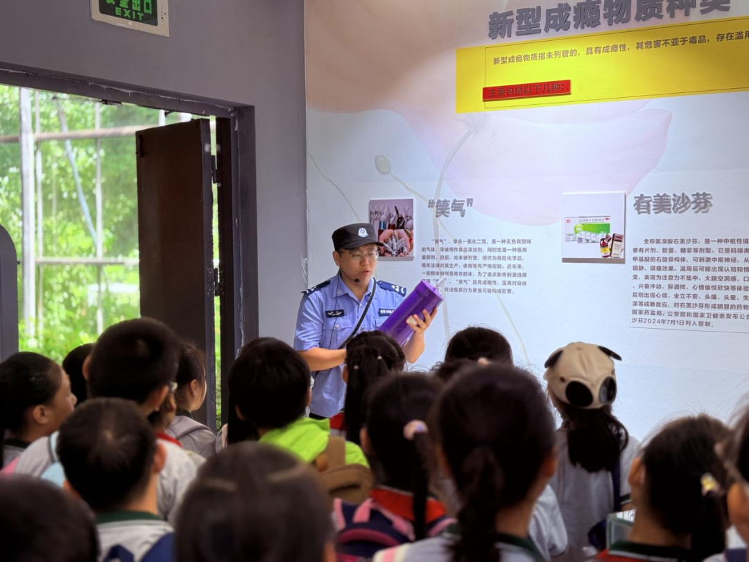 活动打破传统“说教”模式,市公安局禁毒支队辅警方明剑化身“禁毒讲师”,结合图文展板与实物样本,从中国禁毒史切入,重点拆解青少年易接触的毒品陷阱,戳破新型毒品的伪装,让抽象知识变得具体可感。