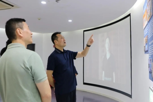 调研期间,陈作雁支队长深入察看禁毒教育馆各个展区,逐区了解展区布局、内容设计及使用情况。在禁毒互动体验区,他现场察看了毒品全息投影仪、模拟吸毒衰变仪器、吸毒血液循环装备等专业设备,并仔细询问设备操作原理、学生体验频次及教育效果反馈。通过亲身体验设备演示过程,他直观感受到互动教学对青少年认知毒品危害的积极作用,并高度肯定这种 “可视化、体验式” 的教育教学方式。